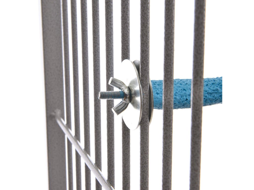 Ako sa toto bidlo pre papagáje inštaluje? Úplne jednoducho. Bidlo má na konci krídlovú maticu a dve podložky. Odkrúťte maticu a zložte jednu podložku. Priložte bidlo z jednej strany mreže klietky, z druhej strany založte druhú podložku a krídlovú maticu zatiahnite na doraz. Bidlo tým bude stabilné.
