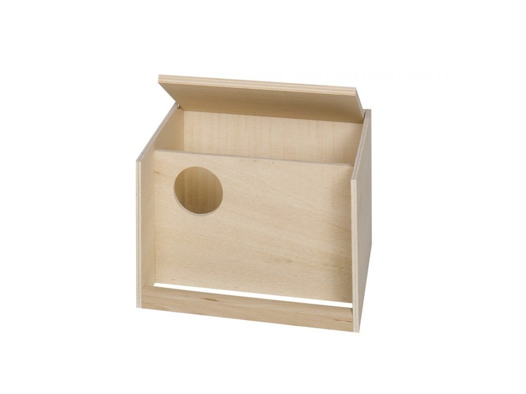 Búdka na hniezdenie pre malé exoty s rozmerom 30x20x28cm.