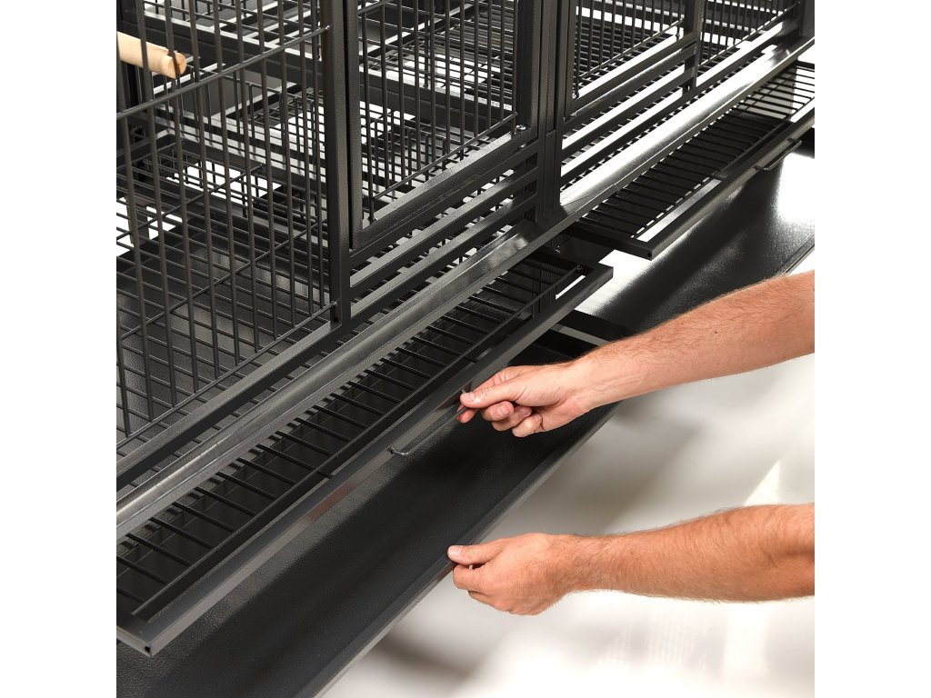 Predeľovacia mreža rozdelí klietku na dve samostatné klietky, ak si to situácia bude vyžadovať. Alebo predeľovaciu mrežu vyberiete a vaši operený priatelia budú mať kráľovstvo, v ktorom bude radosť žiť. AVILON® Powder Coating je spôsob práškového lakovania klietky, ktorý je absolútne netoxický a zároveň dokáže dlhšie bez poškodenia odolávať zobákom a pazúrom vašich operených miláčikov. Čistenie voliéry Bežná dezinfekcia Vďaka pevnej a dlhotrvajúcej farbe doporučujeme čistenie 1x denne jemným postriekaním spodných roštov vodou z rozprašovača. Nechajte vodu posobiť 5 min a iba zotrite papierovou alebo bavlnenou handričkou. Hrubšie znečistenie môžete odstrániť kefkou (s mäkkými štetinami) a horúcou vodou. Pri takejto starostlivosti o klietku bude voliéra pre vaše papagáje aj po nikoľkých rokoch ako nová.