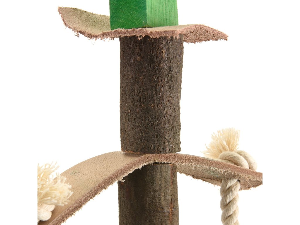 Tip: Hračku umiestnite cca 10-20 cm od bidla (v závislosti od veľkosti papagája), aby ste mu umožnili bezproblémový prístup z bidla na hračku (umiestnite ju tak, aby musel pri hraní vynaložiť námahu). Tým zabezpečíte posilňovanie svalstva nôh a zaroveň sa bude pozitívne budovať koordinácia