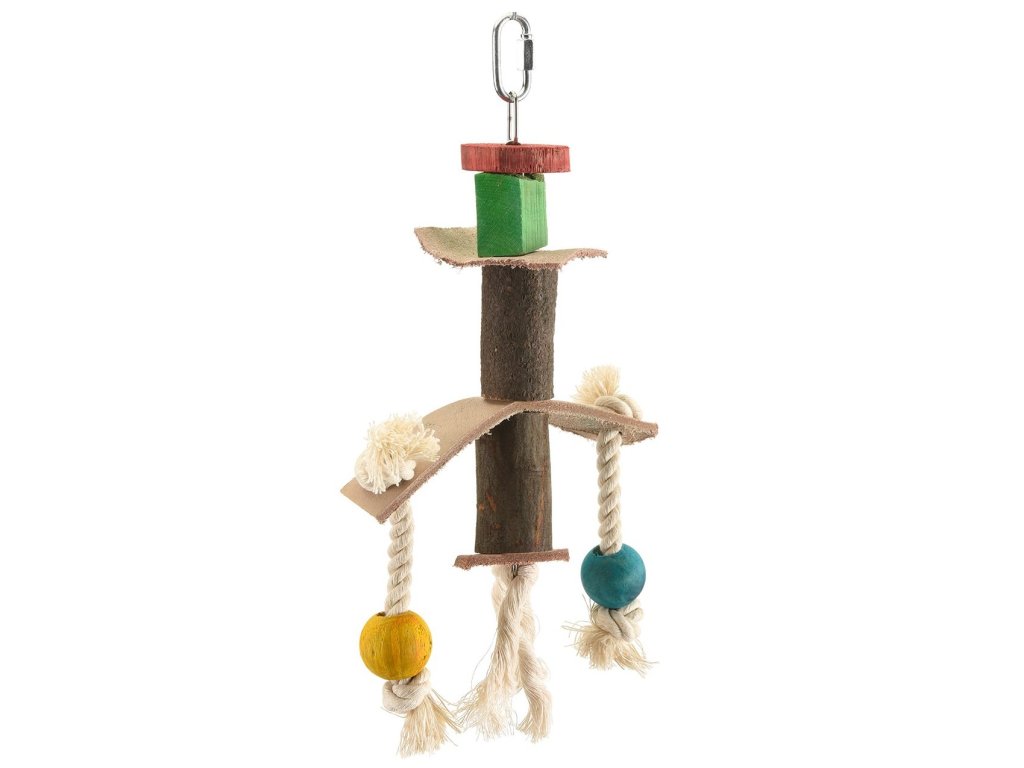 Hračka pre stredné papagáje Double Ball. Rozmer: 14 x 5 x 24 cm Zaujímavá drevená hračka pre menšie stredné papagáje ako je napríklad agapornis alebo papagáj senegálsky.