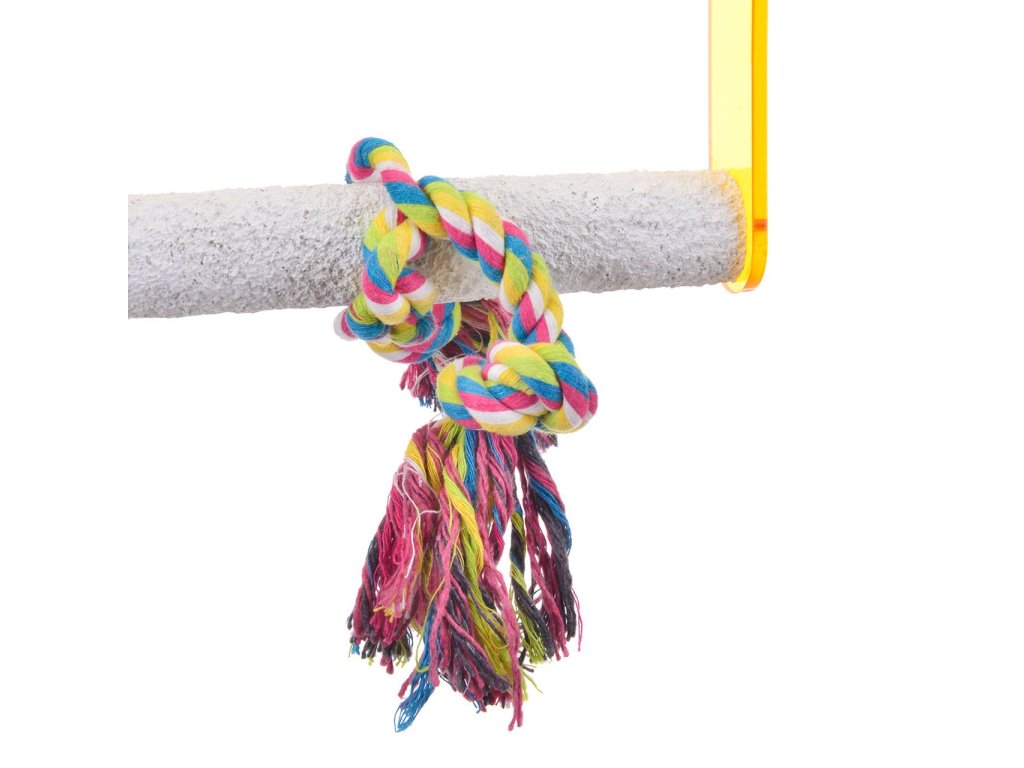 Klasika! S pevným a kvalitným spracovaným akrylovým oblúkom a bavlneným lanom pre pohodlné nastupovanie. V našom sortimente je už viac ako deväť rokov a je 1000-krát osvedčený s jedinečným terapeutickým bidlom, ktorý trénuje svaly nôh a udržuje krátke pazúriky na nohách. Prečo kúpiť túto hojdačku: - Vyrábajú sa z prírodných materiálov - udržuje zobák a pazúriky v kondícii - Všetky použité kovové časti sú pochrómované alebo vyrobené z nehrdzavejúcej ocele