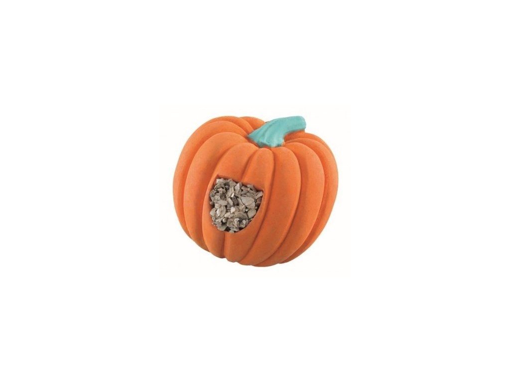 Minerálny kameň v tvare tekvice pre papagáje. Obsahuje zmes minerálov, vitamínov a vápnika na podporu kostí. Udržuje Vášho púapagája v lepšej kondícii a zároveň má pozitívny vplyv na perie. Vnútorná náplň obsahuje zrniny.