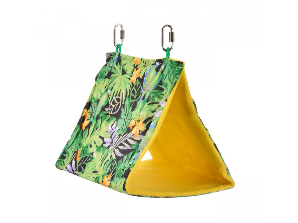 Náš tip: stan umiestnite čo najbližšie otvorom k bidlu. Ideálna vzdialenosť od bidla je 5-25 cm (v závislosti od veľkosti papagája). Pri premiestnení sa do stanu musí váš operený priateľ vynaložiť námahu, a tým sa podporuje posilňovanie svalstva a zlepšuje sa koordinácia. Materiál: bavlna, flís